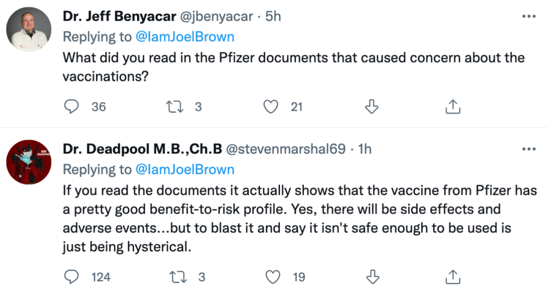 如果您阅读这些文件,它实际上表明辉瑞的疫苗具有相当好的风险收益比。