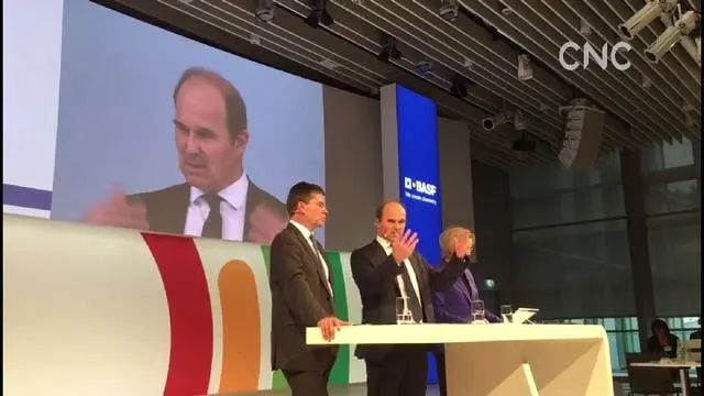 德国化工巨头巴斯夫公司首席执行官马丁·布鲁德米勒(中)。视频截图