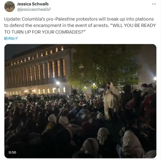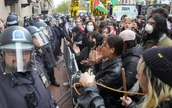 2024年4月18日,美国哥伦比亚大学广大学生所举行的,抗议美国政府的战争政策,支持巴勒斯坦人民反对以色列种族屠杀的正义斗争的活动,惨遭到美国警察的血腥镇压,100多名学生被捕。消息传来,举世哗然。哈佛大学、耶鲁大学、麻省理工学院、普林斯顿大学、加州大学、波士顿大学、北卡罗来纳大学等数十所大学的广大学生纷纷响应,加入抗议美国战争政策,支持巴勒斯坦人民反种族屠杀的正义斗争,声援哥伦比亚大学被捕学生的活动,接着又有大批大批的学生被捕。